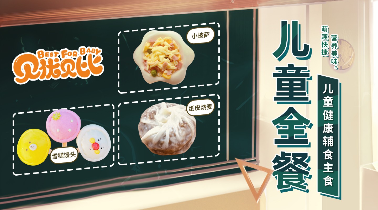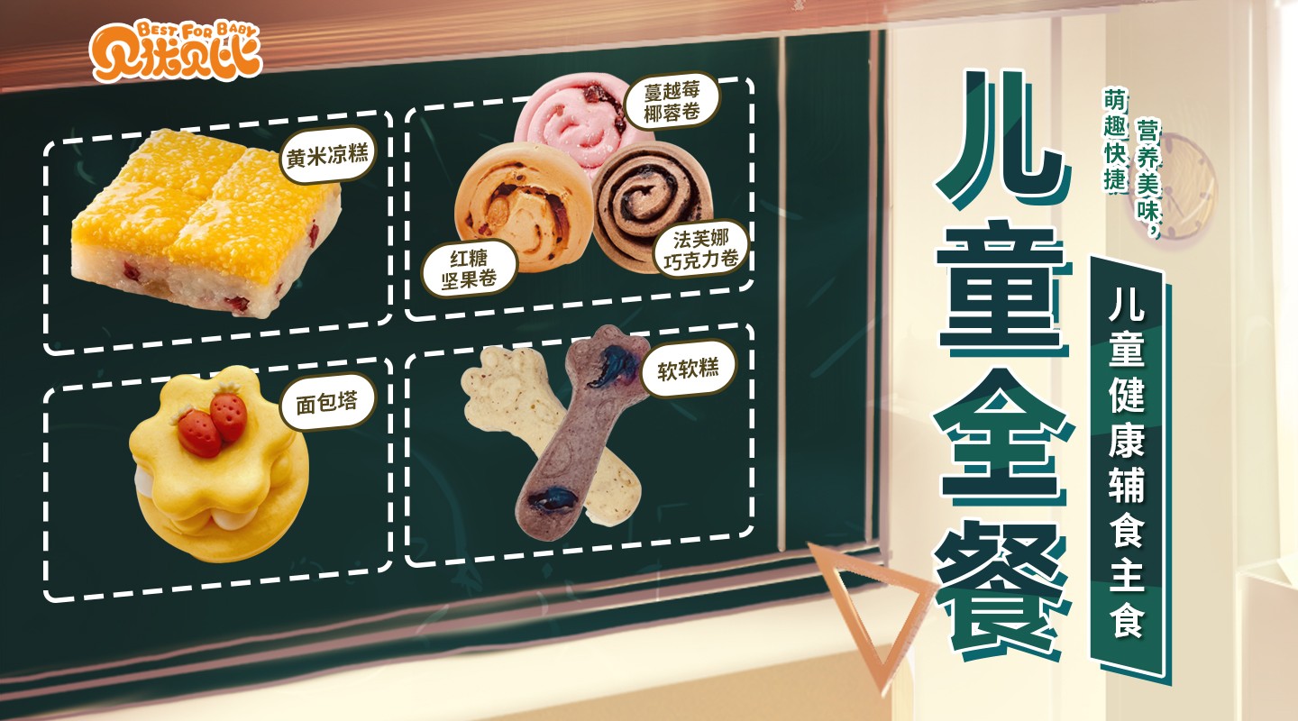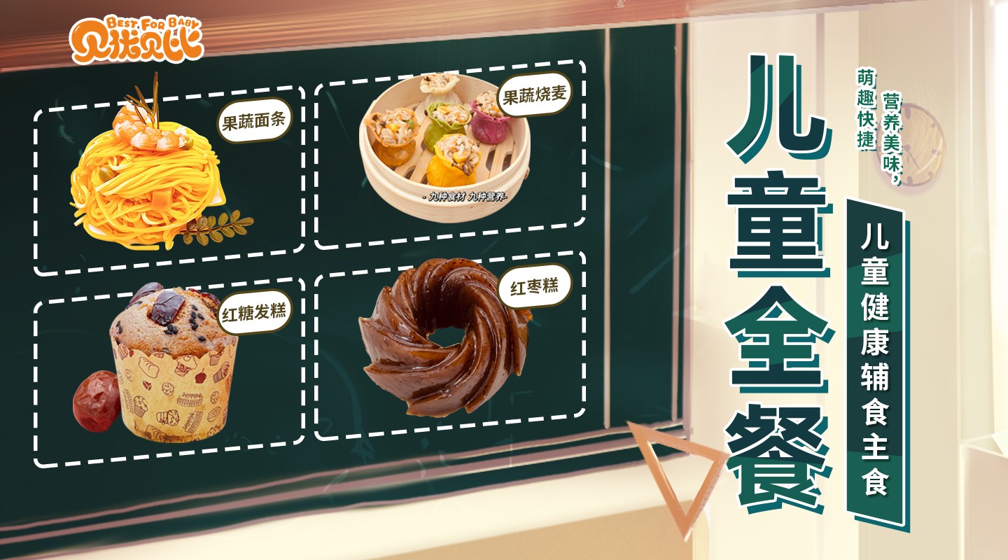 旗下品牌贝优贝比倾力打造儿童全餐,我司以严格的质量要求,科学的营养配比及强大的研发销售体系,创造独具一格的儿童健康辅食主食新风尚。